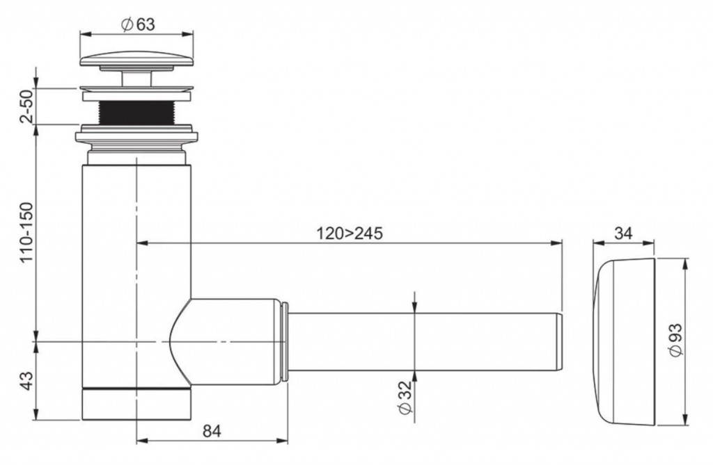 Prostor v horní zásuvce nábytku není omezován tělesem sifonu a šetří vnitřní úložný prostor.
