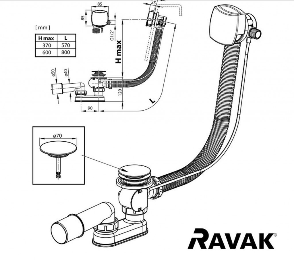 Vanové odtokové komplety s délkou 800 mm jsou vhodné pro vany Formy 01, Formy 02, City/City Slim.