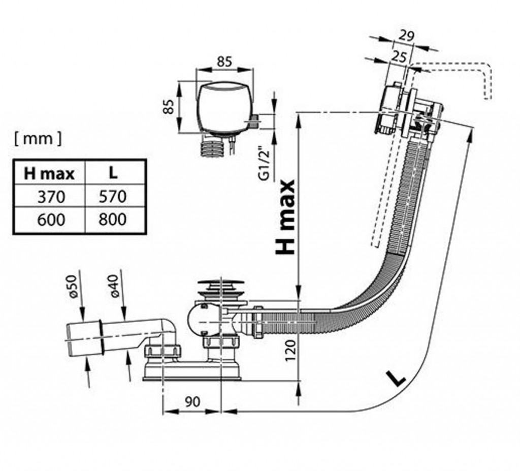 U bowdenového mechanismu výpusti jsou horní kolečko a odtoková zátka propojeny bowdenovým lankem. Otáčením ovládacího kolečka odtokovou zátku zavřete nebo otevřete.