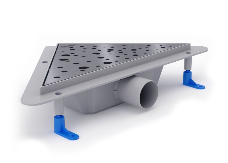Tento moderní odtokový rohový žlab nabízí velmi kvalitní zpracování a kombinaci pevného plastu s leštěným nerezovým roštem.