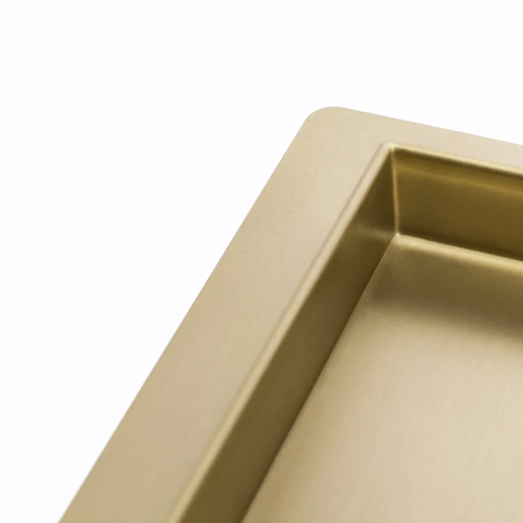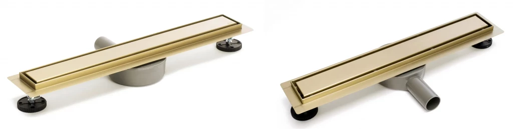 Kryt v odtoku Pure Neo Pro je oboustranný, takže si můžeme vybrat dvě verze povrchové úpravy - povrch z kartáčovaného zlata nebo lepená dlaždice, což nám umožňuje sladit typ povrchové úpravy s každou koupelnou.