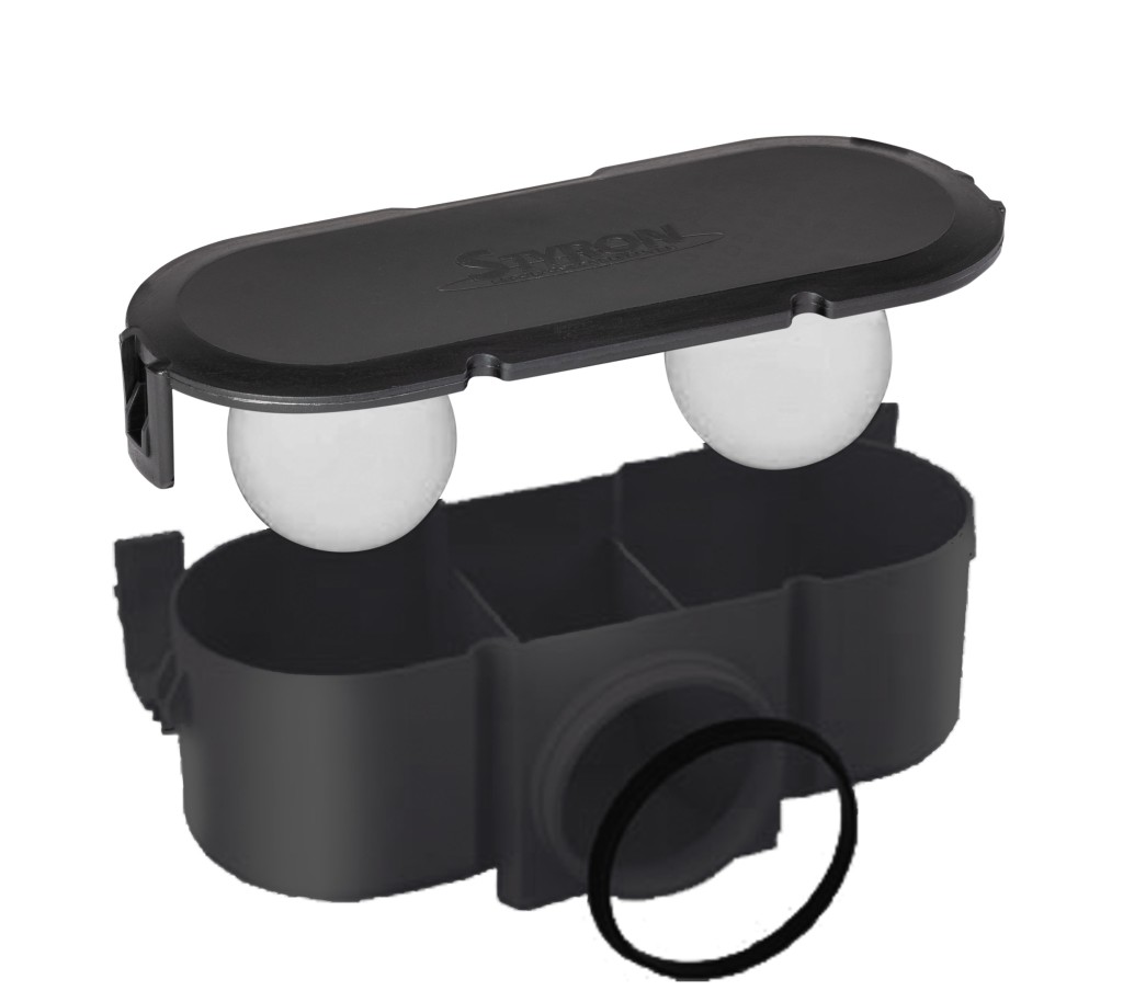 - Dvojitá zápachová uzávěra, vodní sloupec a kulička. Tzn. V případě odpaření vody (podlahové topení, nepoužívané byty atd.) kulička zaklapne otvor a zabraňuje vzlínání pachu