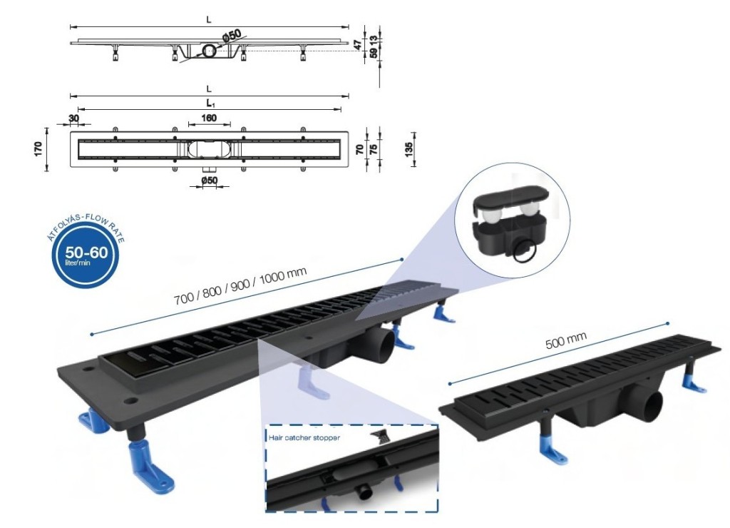 Proč pořídit žlab STANDARDline BLACK 2v1:- Odtok 50 mm