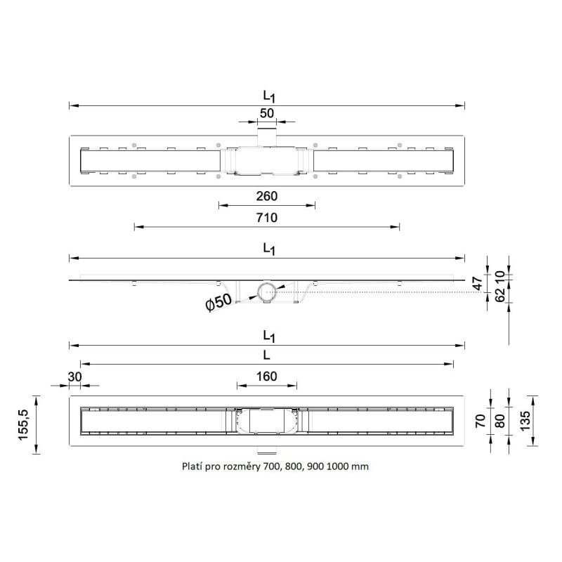 Odtokový žlab KLASSZIK- 700: ROZMĚR A roštu 70 cm, délka žlabu 76 cm (možnost vložení dlažby)
