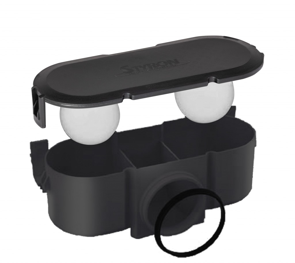 • Dvojitá zápachová uzávěra, vodní sloupec a kulička. Tzn. V případě odpaření vody (podlahové topení,  nepoužívané byty atd.) kulička zaklapne otvor a zabraňuje vzlínání pachu