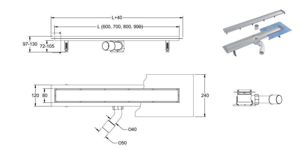 Kvalitně a moderně zpracovaný odtokový žlab. Tělo žlabu i vlastní rošt je vyroben z velice kvalitní nerezi, rošt s povrchovou úpravou kartáčovaná nerez. Rošt lze použít buď pro vložení dlažby, nebo jako pohledový (kartáčovaný chrom). Tento žlab obohatí každou koupelnu o nádech luxusu. Sada obsahuje: žlab se sifonem a nožičkami, rošt a hydroizolační pásku.