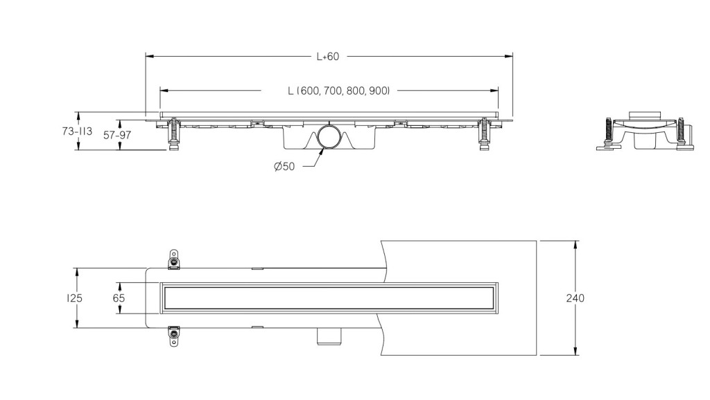Kvalitně a moderně zpracovaný odtokový žlab, vyroben kombinací pevného plastu a roštu s povrchovou úpravou "kartáčovaný chrom" obohatí každou koupelnu o nádech luxusu. Sada obsahuje: žlab se sifonem a nožičkami, rošt a hydroizolační pásku.