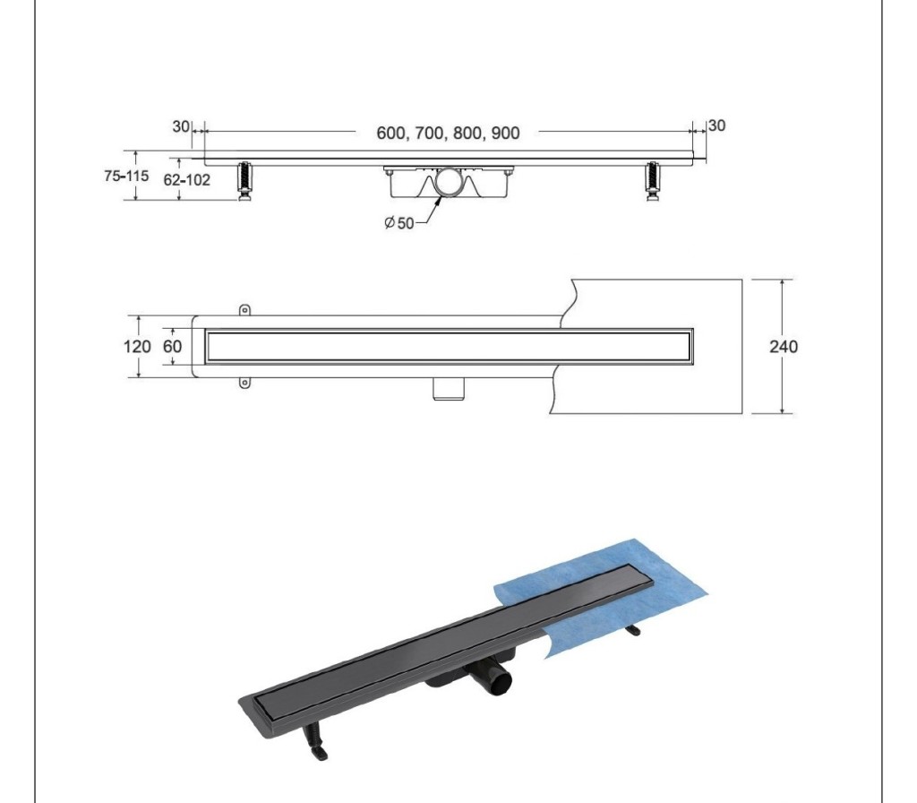 Kvalitně a moderně zpracovaný odtokový žlab. Tělo žlabu i vlastní rošt je vyroben z velice kvalitní nerezi a jsou oba s povrchovou úpravou v grafitové barvě. Rošt lze použít buď pro vložení dlažby, nebo jako pohledový (grafitová barva). Tento žlab obohatí každou koupelnu o nádech luxusu. Sada obsahuje: žlab se sifonem a nožičkami, rošt a hydroizolační pásku.
