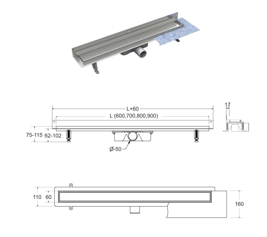 Kvalitně a moderně zpracovaný odtokový žlab. Tělo žlabu i vlastní rošt je vyroben z velice kvalitní nerezi, rošt s povrchovou úpravou kartáčovaná nerez. Rošt lze použít buď pro vložení dlažby, nebo jako pohledový (kartáčovaný chrom). Tento žlab obohatí každou koupelnu o nádech luxusu. Sada obsahuje: žlab se sifonem a nožičkami, rošt a hydroizolační pásku.