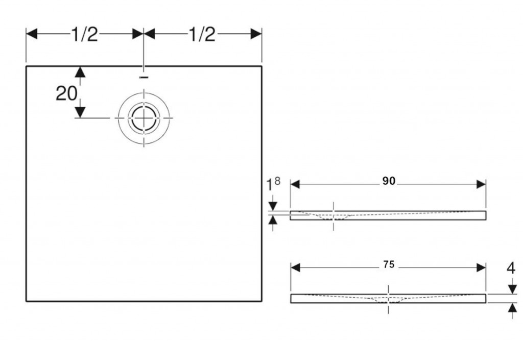 - pro tloušťky podlahy s nožičkami sprchových vaniček k horní úrovni hotové podlahy 10–25 cm