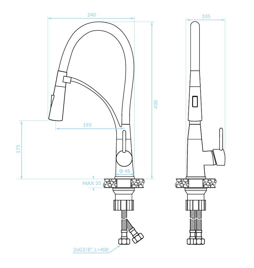 Instalace je díky montážnímu pouzdru rychlá a bezpečná. Povrchová úprava baterie z ní dělá výrazný designový prvek, který zapadne do kuchyní ve stylu moderním, industriálním nebo glamour.