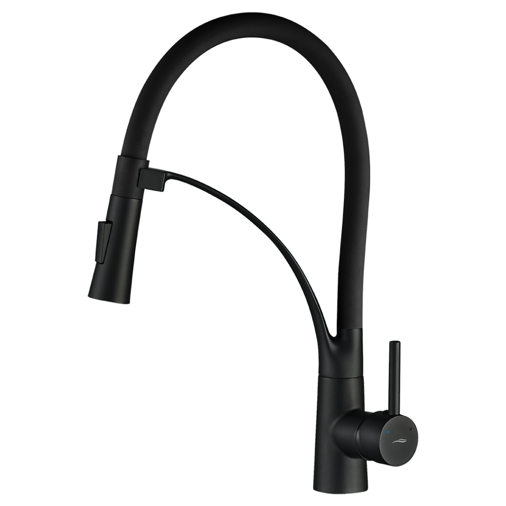 Dřezová baterie OLOR je stylový a vysoce funkční prvek moderní kuchyně, který spojuje chytrá technická řešení s důrazem na design a ekologii. Vyrobena z odolné mosazi a dostupná ve variantách grafit, kartáčované zlato s černou výlevkou a černá.