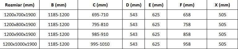 Instalační rozměr posuvných dveří do sprchového koutu je 1185-1200 mm. Samotné dveře, kterými budete vcházet do sprchy, mají 62,5 cm. Ty se ale díky kovovému madlu nezasouvají celé, takže vstup do sprchy budete mít 50,5 cm.