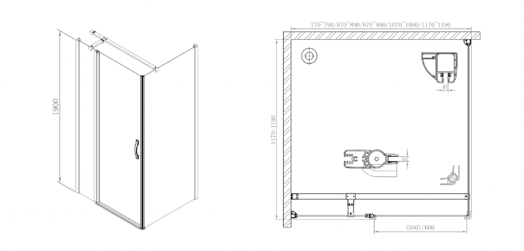 - Na míru je možné vyrobit i pevné části čtvrtkruhového sprchového koutu tak, aby vznikl atypický čtvrtkruh o rozměru 1000x800 nebo 1200x900 mm