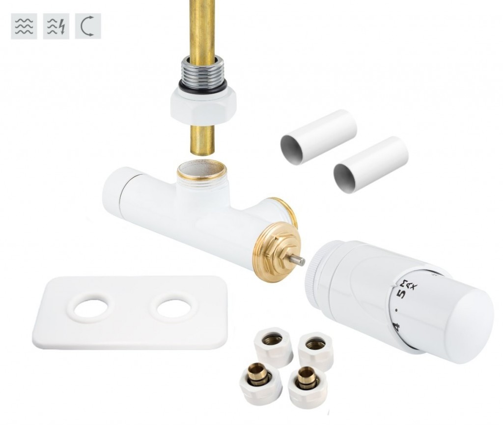 Jednobodová oboustranná (levá i pravá) termostatická sada ONE vč. krycí rozety a 2 krycích trubiček (mosaz) je určena pro připojení radiátorů na rozvody TUV s vývodem ze zdi s roztečí 50mm.