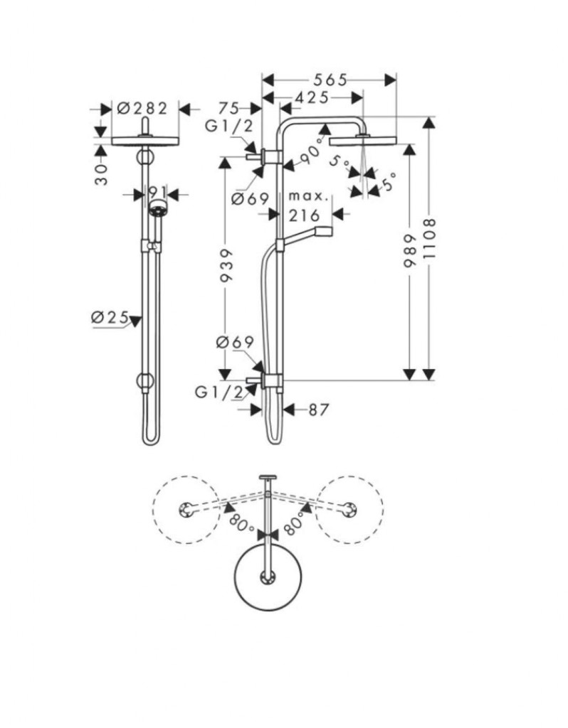 Nástěnná sprchová souprava Showerpipe 280 pro podomítkovou instalaci obsahuje
