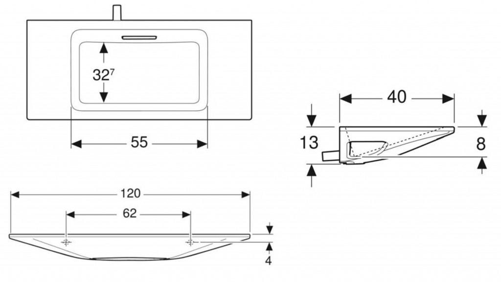 Instalační prvek pro umyvadlo Geberit ONE je nutno objednat zvlášť.