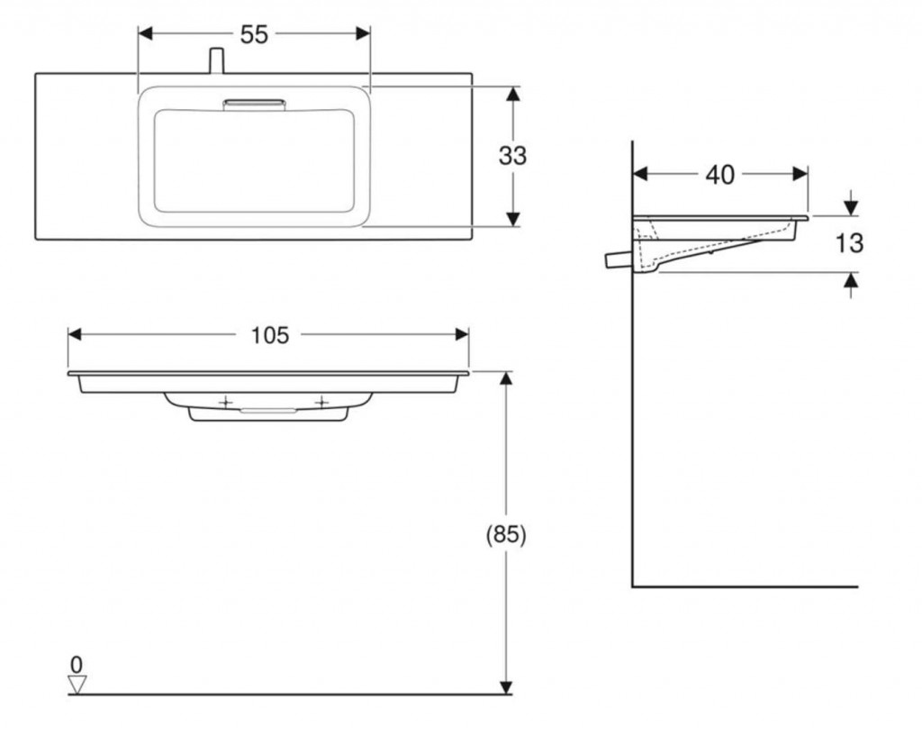 Nutné dokoupit skříňku pod umyvadlo Geberit ONE se dvěma zásuvkami a zkráceným vyložením a instalační prvek pro umyvadlo Geberit ONE.