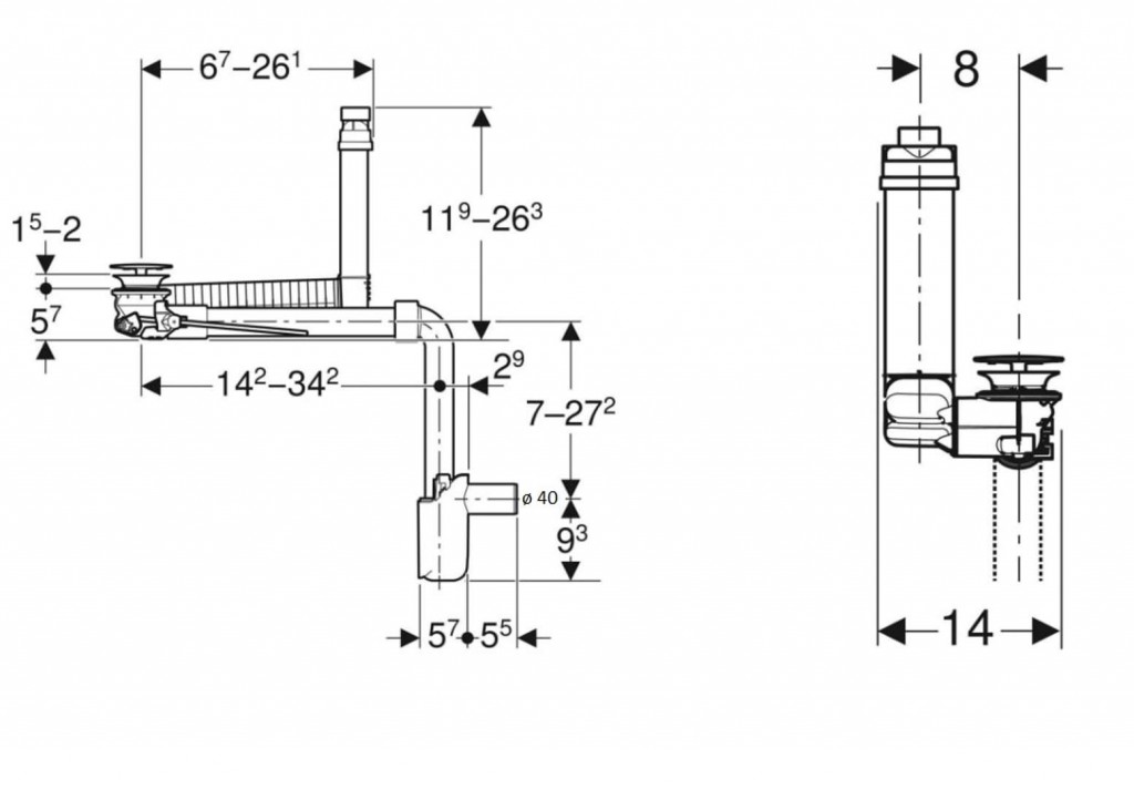 - pro umyvadla s tloušťkou materiálu 15–20 mm v oblasti odpadního ventilu