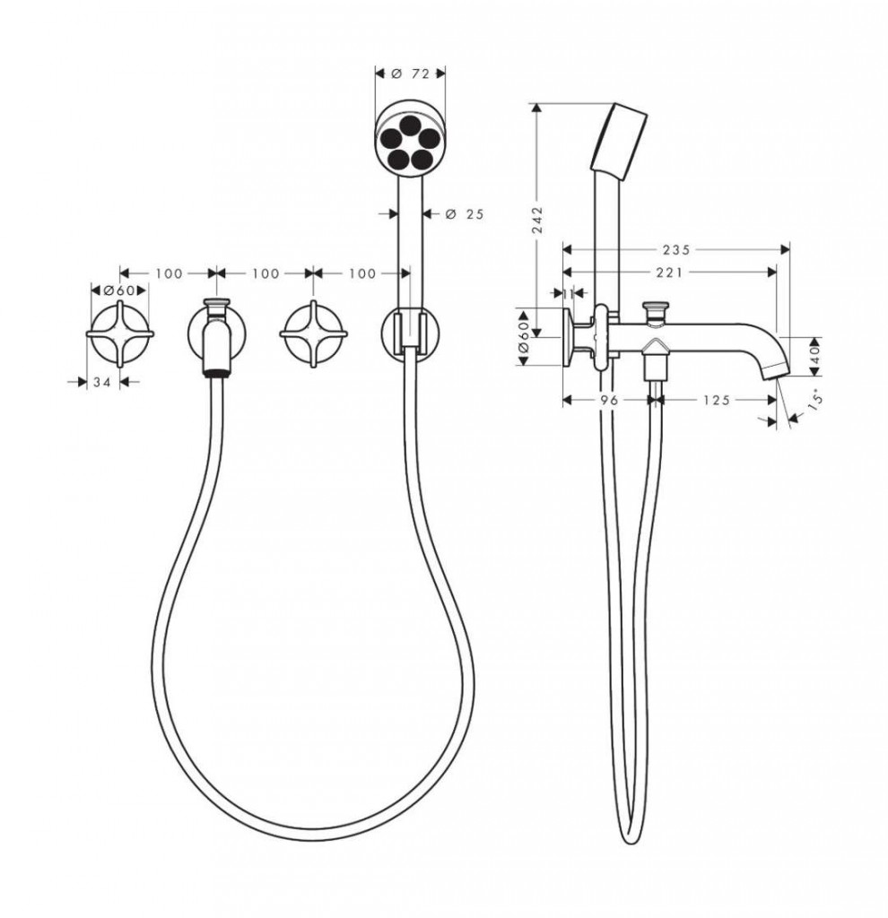 s ruční sprchou a sprchovou hadicí