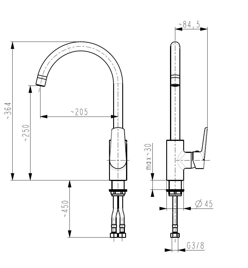 Základním materiálem baterie výrobce KFA ARMATURA je mosaz té nejvyšší kvality. Spolehlivě vám bude sloužit po mnoho let i díky povrchové úpravě chránící dřezovou baterii před poškozením a korozí.