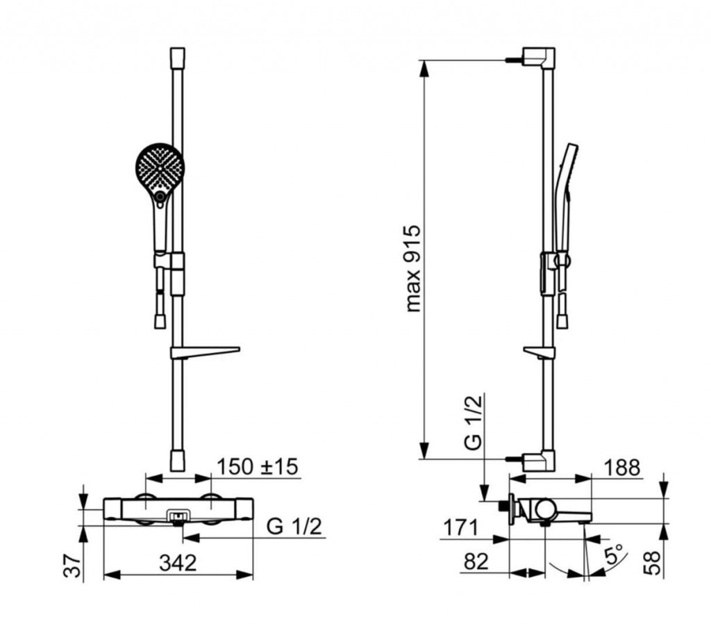 - s posuvným držákem ruční sprchy a mýdlenkou