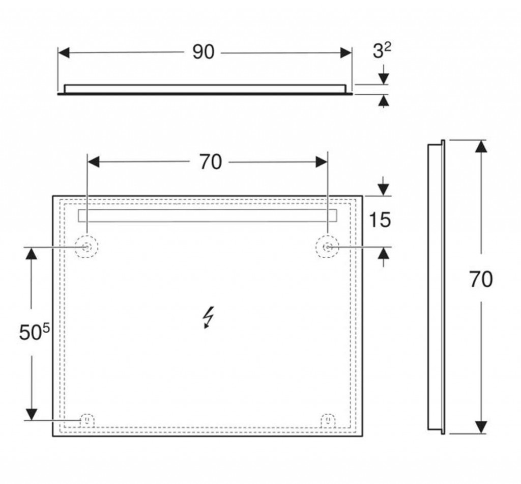 Zrcadlo Option Basic Square v hliníkovém rámu s LED osvětlením