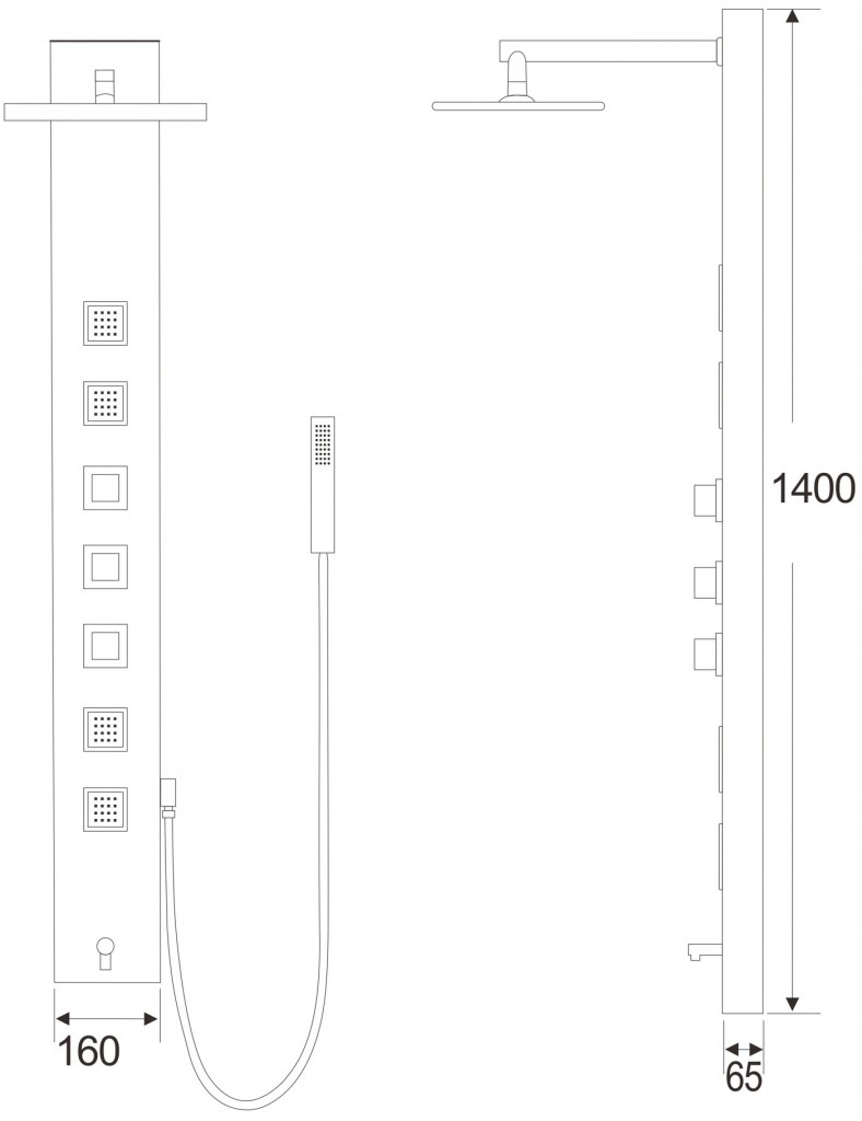 Sprchový panel je vyrobený z nerezové oceli a opatřen povrchovou úpravou. Panel série ORCO je dostupný v barevných variantách: chrom a černá. Celková výška panelu je 140 cm a šířka 16 cm.