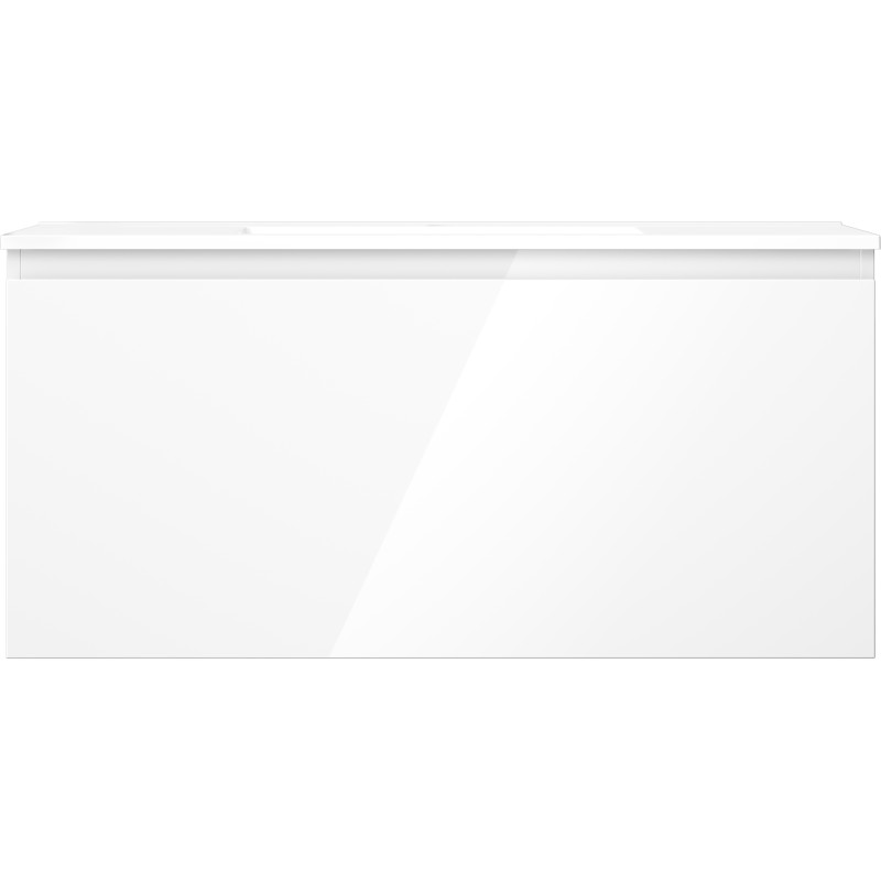 Specifikace produktu: Rozměry skříňky: Šířka: 100 cm Hloubka: 46 cm Výška: 47 cm Barva korpusu: Lesklá bílá Materiál korpusu: Lakovaná deska Barva čela: Lesklá bílá Materiál čela: Lakovaná MDF deska Struktura čela: Hladká Počet zásuvek: 1 Prostorná zásuvka s funkcí tlumeného dovírání Povrch odolný vůči UV záření Rozměry umyvadla: Šířka: 101 cm Hloubka: 46,5 cm Výška: 16,8 cm Barva umyvadla: Lesklá bílá Materiál umyvadla: Konglomerát Otvor pro přepad: Ano Otvor pro baterii: Ano Smontovaný výrobek