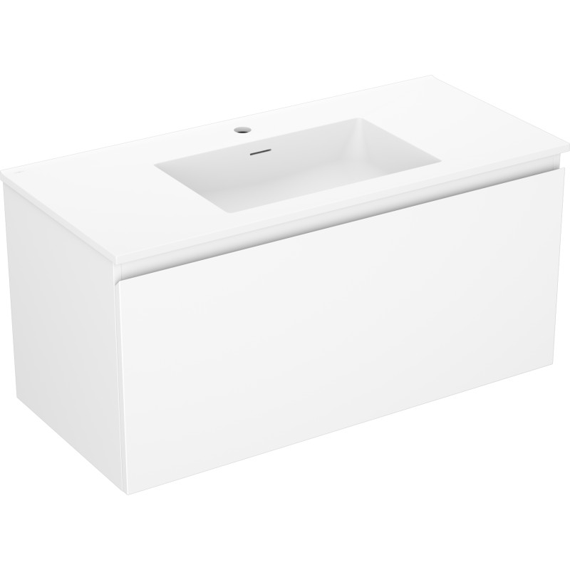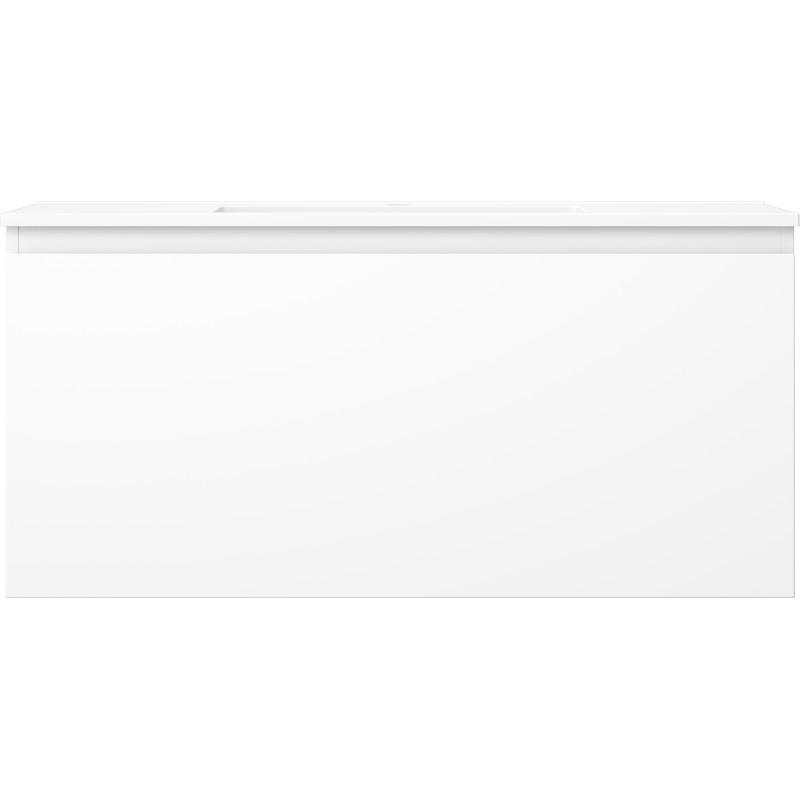 Specifikace produktu: Rozměry skříňky: Šířka: 100 cm Hloubka: 46 cm Výška: 47 cm Barva korpusu: Matná bílá Materiál korpusu: Lakovaná deska Barva čela: Matná bílá Materiál čela: Lakovaná MDF deska Struktura čela: Hladká Počet zásuvek: 1 Prostorná zásuvka s funkcí tlumeného dovírání Povrch odolný vůči UV záření Rozměry umyvadla: Šířka: 101 cm Hloubka: 46,5 cm Výška: 16,5 cm Barva umyvadla: Matná bílá Materiál umyvadla: Konglomerát Otvor pro přepad: Ano Otvor pro baterii: Ano Smontovaný výrobek