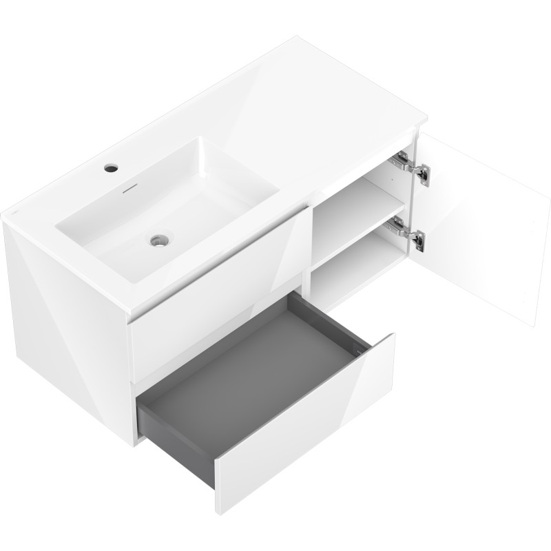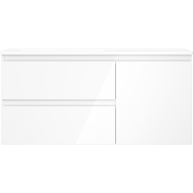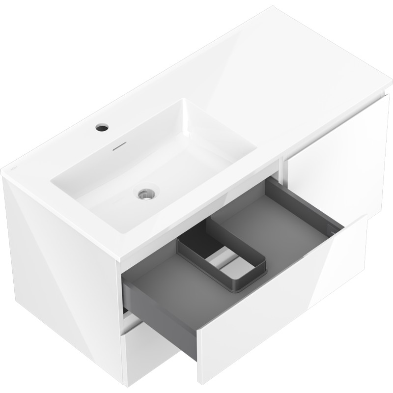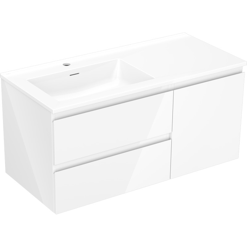 Specifikace produktu: Rozměry skříňky: Šířka: 100 cm Hloubka: 46 cm Výška: 47 cm Sada obsahuje: Zásuvková skříňka pod umyvadlo: Šířka: 60 cm Hloubka: 46 cm Výška: 47 cm Barva korpusu: Bílý lesk Materiál korpusu: Lakovaná deska Barva čela: Bílý lesk Materiál čela: Lakovaná MDF deska Konstrukce čela: Hladká Počet zásuvek: 2 Prostorná zásuvka s funkcí tlumeného dovírání Umyvadlová skříňka s dvířky: Šířka: 40 cm Výška: 47 cm Hloubka: 46 cm Barva korpusu: Bílý lesk Materiál korpusu: Lakovaná deska Barva čela: Bílý lesk Materiál čela: Lakovaná MDF deska Konstrukce čela: Hladká Počet dvířek: 1 1 police Panty s funkcí tlumeného dovírání Univerzální montáž dvířek (levé/pravé) UV odolný povrch Umyvadlo: Šířka: 101 cm Hloubka: 46,5 cm Výška: 16,5 cm Barva umyvadla: Lesklá bílá Materiál umyvadla: Konglomerát Otvor pro přepad: Ano Otvor pro baterii: Ano Smontovaný výrobek