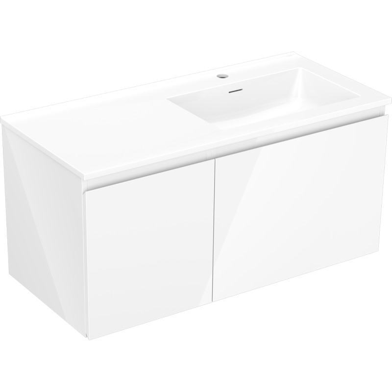 Specifikace produktu: Rozměry skříňky: Šířka: 100 cm Hloubka: 46 cm Výška: 47 cm Sada obsahuje: Zásuvková skříňka pod umyvadlo: Šířka: 60 cm Hloubka: 46 cm Výška: 47 cm Barva korpusu: Bílý lesk Materiál korpusu: Lakovaná deska Barva čela: Bílý lesk Materiál čela: Lakovaná MDF deska Konstrukce čela: Hladká Počet zásuvek: 1 Prostorná zásuvka s funkcí tlumeného dovírání Umyvadlová skříňka s dvířky: Šířka: 40 cm Výška: 47 cm Hloubka: 46 cm Barva korpusu: Bílý lesk Materiál korpusu: Lakovaná deska Barva čela: Bílý lesk Materiál čela: Lakovaná MDF deska Konstrukce čela: Hladká Počet dvířek: 1 1 police Panty s funkcí tlumeného dovírání Univerzální montáž dvířek (levé/pravé) UV odolný povrch Umyvadlo: Šířka: 101 cm Hloubka: 46,5 cm Výška: 16,5 cm Barva umyvadla: Lesklá bílá Materiál umyvadla: Konglomerát Otvor pro přepad: Ano Otvor pro baterii: Ano Smontovaný výrobek