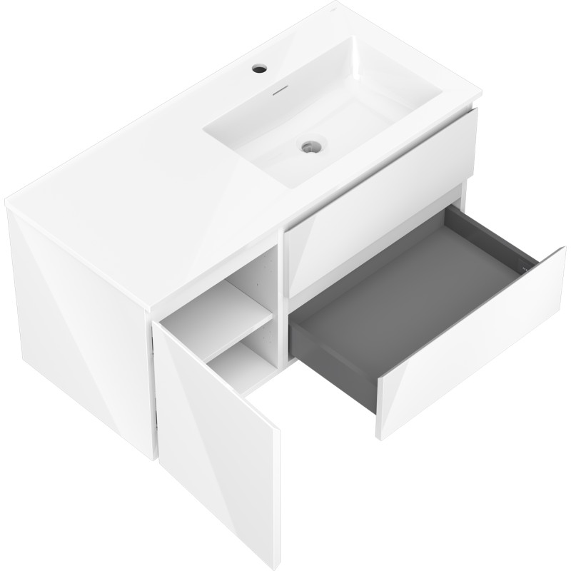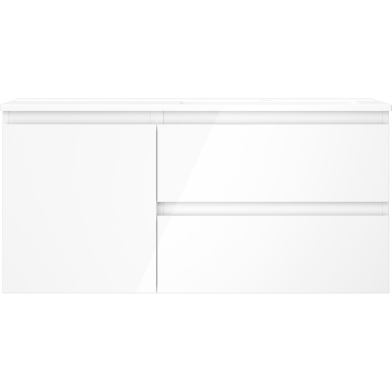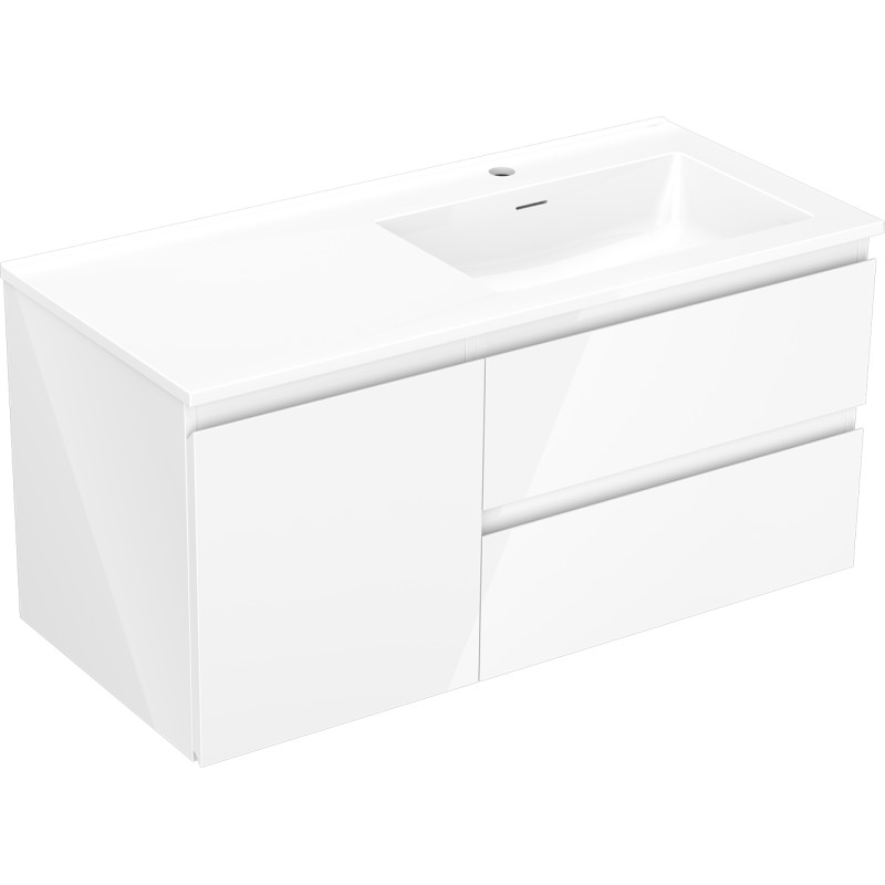 Specifikace produktu: Rozměry skříňky: Šířka: 100 cm Hloubka: 46 cm Výška: 47 cm Sada obsahuje: Zásuvková skříňka pod umyvadlo: Šířka: 60 cm Hloubka: 46 cm Výška: 47 cm Barva korpusu: Bílý lesk Materiál korpusu: Lakovaná deska Barva čela: Bílý lesk Materiál čela: Lakovaná MDF deska Konstrukce čela: Hladká Počet zásuvek: 2 Prostorná zásuvka s funkcí tlumeného dovírání Umyvadlová skříňka s dvířky: Šířka: 40 cm Výška: 47 cm Hloubka: 46 cm Barva korpusu: Bílý lesk Materiál korpusu: Lakovaná deska Barva čela: Bílý lesk Materiál čela: Lakovaná MDF deska Konstrukce čela: Hladká Počet dvířek: 1 1 police Panty s funkcí tlumeného dovírání Univerzální montáž dvířek (levé/pravé) UV odolný povrch Umyvadlo: Šířka: 101 cm Hloubka: 46,5 cm Výška: 16,5 cm Barva umyvadla: Lesklá bílá Materiál umyvadla: Konglomerát Otvor pro přepad: Ano Otvor pro baterii: Ano Smontovaný výrobek