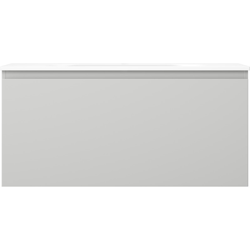 Specifikace produktu: Rozměry skříňky: Šířka: 100 cm Hloubka: 46 cm Výška: 47 cm Barva korpusu: Matně šedá Materiál korpusu: Lakovaná deska Barva čela: Matně šedá Materiál čela: Lakovaná MDF deska Struktura čela: Hladká Počet zásuvek: 1 Prostorná zásuvka s funkcí tlumeného dovírání Povrch odolný vůči UV záření Rozměry umyvadla: Šířka: 101 cm Hloubka: 46,5 cm Výška: 16,5 cm Barva umyvadla: Matně bílá Materiál umyvadla: Konglomerát Otvor pro přepad: Ano Otvor pro baterii: Ano Smontovaný výrobek