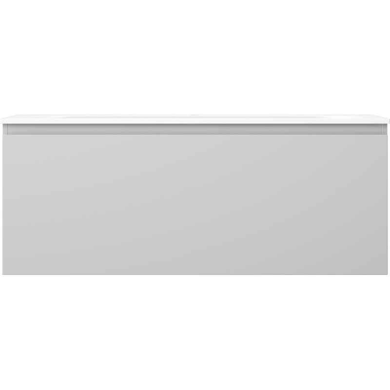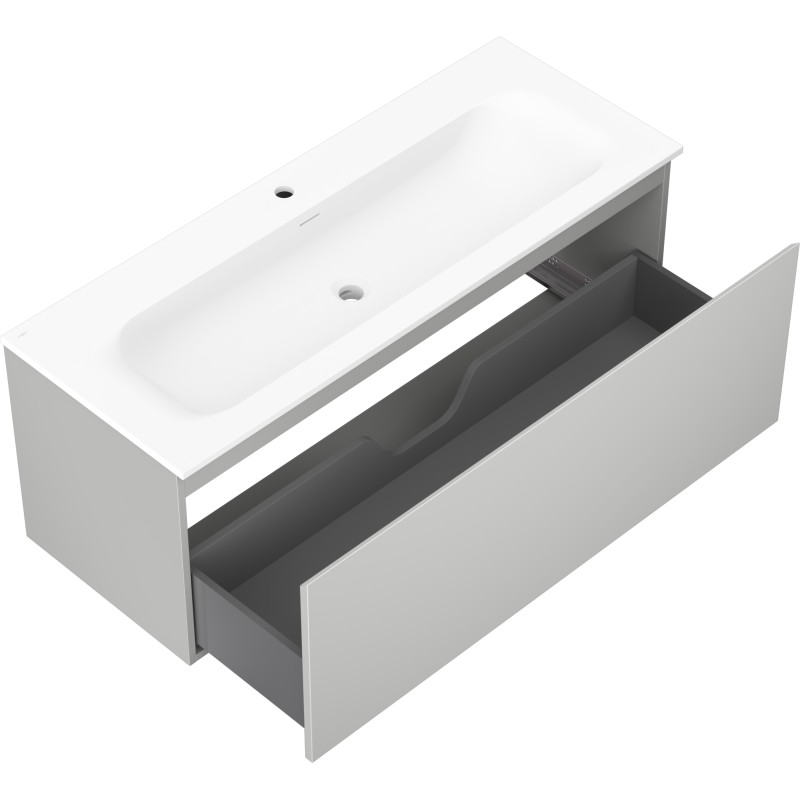 Specifikace produktu: Rozměry skříňky: Šířka: 120 cm Hloubka: 46 cm Výška: 47 cm Barva korpusu: Matně šedá Materiál korpusu: Lakovaná deska Barva čela: Matně šedá Materiál čela: Lakovaná MDF deska Struktura čela: Hladká Počet zásuvek: 1 Prostorná zásuvka s funkcí tlumeného dovírání Povrch odolný vůči UV záření Rozměry umyvadla: Šířka: 121 cm Hloubka: 46,5 cm Výška: 16,5 cm Barva umyvadla: Matně bílá Materiál umyvadla: Konglomerát Otvor pro přepad: Ano Otvor pro baterii: Ano Smontovaný výrobek