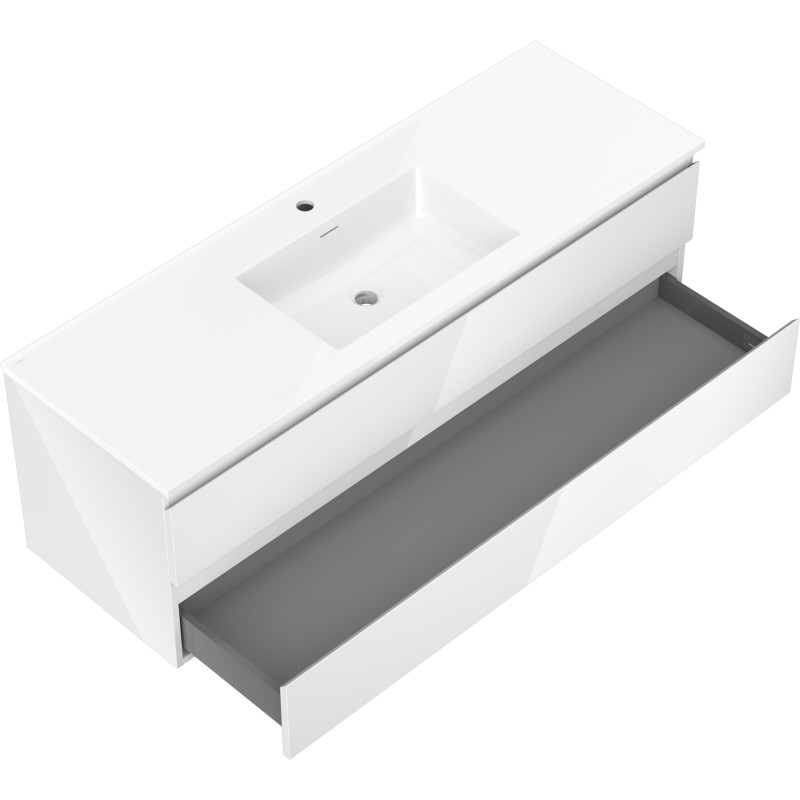 Specifikace produktu: Rozměry skříňky: Šířka: 140 cm Hloubka: 46 cm Výška: 47 cm Barva korpusu: Lesklá bílá Materiál korpusu: Lakovaná deska Barva čela: Lesklá bílá Materiál čela: Lakovaná MDF deska Struktura čela: Hladká Počet zásuvek: 2 Prostorná zásuvka s funkcí tlumeného dovírání Povrch odolný vůči UV záření Rozměry umyvadla: Šířka: 141 cm Hloubka: 46,5 cm Výška: 16,8 cm Barva umyvadla: Lesklá bílá Materiál umyvadla: Konglomerát Otvor pro přepad: Ano Otvor pro baterii: Ano Smontovaný výrobek