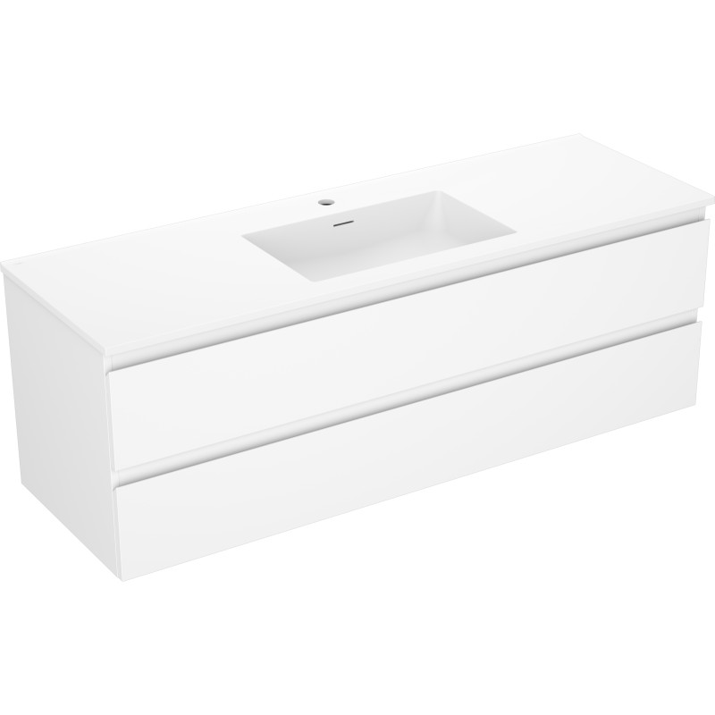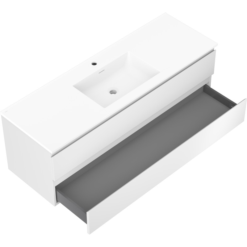 Specifikace produktu: Rozměry skříňky: Šířka: 140 cm Hloubka: 46 cm Výška: 47 cm Barva korpusu: Matná bílá Materiál korpusu: Lakovaná deska Barva čela: Matná bílá Materiál čela: Lakovaná MDF deska Struktura čela: Hladká Počet zásuvek: 2 Prostorná zásuvka s funkcí tlumeného dovírání Povrch odolný vůči UV záření Rozměry umyvadla: Šířka: 141 cm Hloubka: 46,5 cm Výška: 16,5 cm Barva umyvadla: Matná bílá Materiál umyvadla: Konglomerát Otvor pro přepad: Ano Otvor pro baterii: Ano Smontovaný výrobek