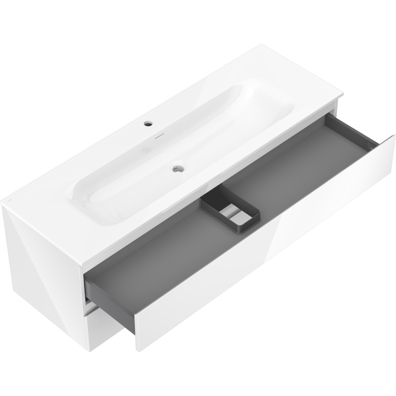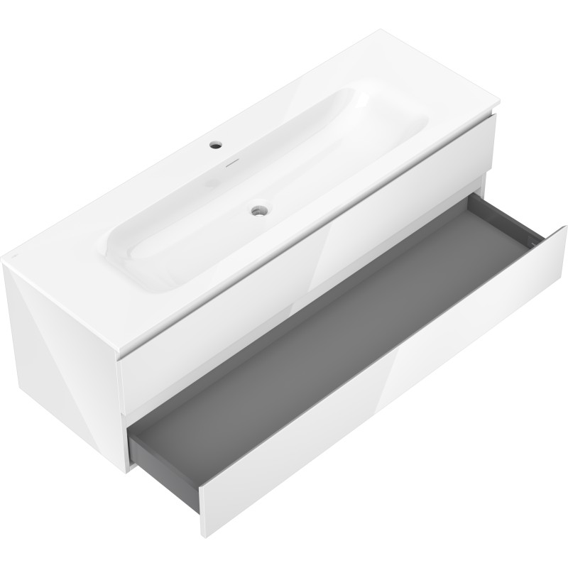 Specifikace produktu: Rozměry skříňky: Šířka: 140 cm Hloubka: 46 cm Výška: 47 cm Barva korpusu: Lesklá bílá Materiál korpusu: Lakovaná deska Barva čela: Lesklá bílá Materiál čela: Lakovaná MDF deska Struktura čela: Hladká Počet zásuvek: 2 Prostorná zásuvka s funkcí tlumeného dovírání Povrch odolný vůči UV záření Rozměry umyvadla: Šířka: 141 cm Hloubka: 46,5 cm Výška: 16,5 cm Barva umyvadla: Lesklá bílá Materiál umyvadla: Konglomerát Otvor pro přepad: Ano Otvor pro baterii: Ano Smontovaný výrobek