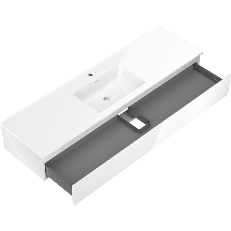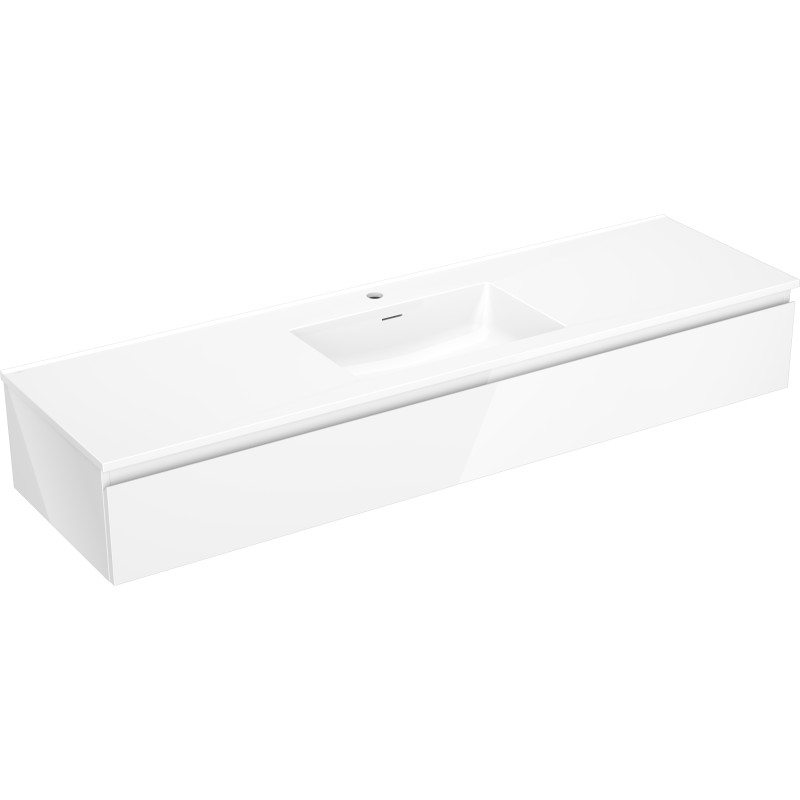 Specifikace produktu: Rozměry skříňky: Šířka: 160 cm Hloubka: 46 cm Výška: 23,5 cm Barva korpusu: Lesklá bílá Materiál korpusu: Lakovaná deska Barva čela: Lesklá bílá Materiál čela: Lakovaná MDF deska Struktura čela: Hladká Počet zásuvek: 1 Prostorná zásuvka s funkcí tlumeného dovírání Povrch odolný vůči UV záření Rozměry umyvadla: Šířka: 161 cm Hloubka: 46,5 cm Výška: 16,5 cm Barva umyvadla: Lesklá bílá Materiál umyvadla: Konglomerát Otvor pro přepad: Ano Otvor pro baterii: Ano Smontovaný výrobek