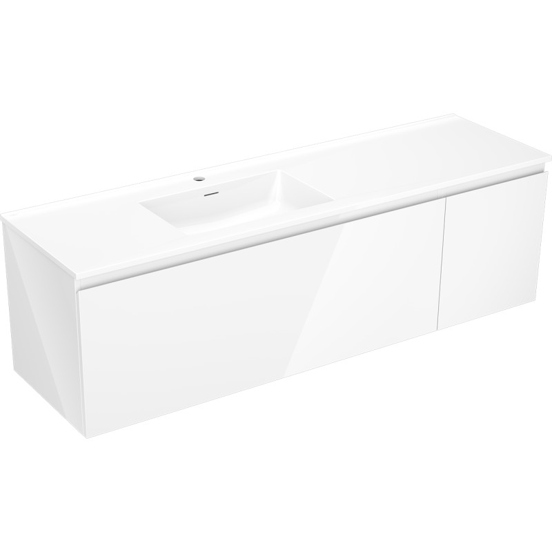 Specifikace produktu: Rozměry skříňky: Šířka: 160 cm Hloubka: 46 cm Výška: 47 cm Sada obsahuje: Zásuvková skříňka pod umyvadlo: Šířka: 120 cm Hloubka: 46 cm Výška: 47 cm Barva korpusu: Bílý lesk Materiál korpusu: Lakovaná deska Barva čela: Bílý lesk Materiál čela: Lakovaná MDF deska Konstrukce čela: Hladká Počet zásuvek: 1 Prostorná zásuvka s funkcí tlumeného dovírání Umyvadlová skříňka s dvířky: Šířka: 40 cm Výška: 47 cm Hloubka: 46 cm Barva korpusu: Bílý lesk Materiál korpusu: Lakovaná deska Barva čela: Bílý lesk Materiál čela: Lakovaná MDF deska Konstrukce čela: Hladká Počet dvířek: 1 1 police Panty s funkcí tlumeného dovírání Univerzální montáž dvířek (levé/pravé) UV odolný povrch Umyvadlo: Šířka: 161 cm Hloubka: 46,5 cm Výška: 16,5 cm Barva umyvadla: Lesklá bílá Materiál umyvadla: Konglomerát Otvor pro přepad: Ano Otvor pro baterii: Ano Smontovaný výrobek