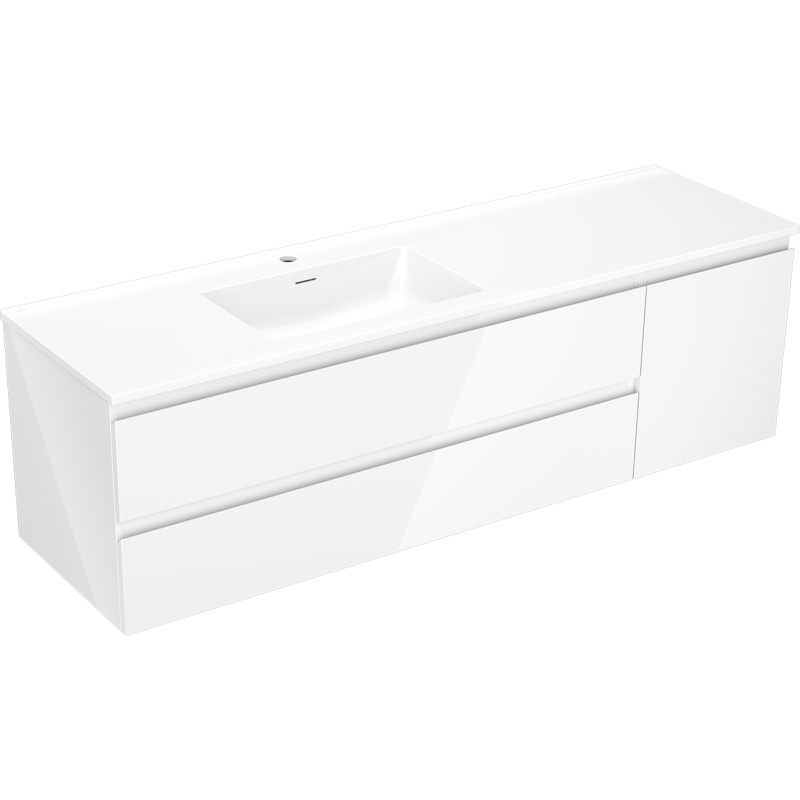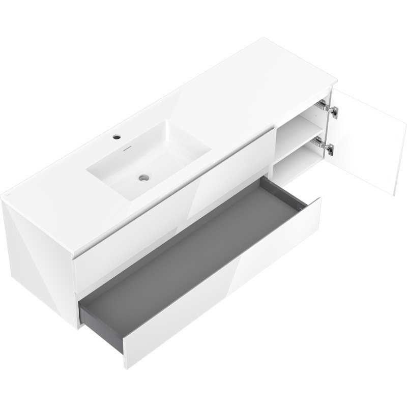 Specifikace produktu: Rozměry skříňky: Šířka: 160 cm Hloubka: 46 cm Výška: 47 cm Sada obsahuje: Zásuvková skříňka pod umyvadlo: Šířka: 120 cm Hloubka: 46 cm Výška: 47 cm Barva korpusu: Bílý lesk Materiál korpusu: Lakovaná deska Barva čela: Bílý lesk Materiál čela: Lakovaná MDF deska Struktura čela: Hladká Počet zásuvek: 2 Prostorná zásuvka s funkcí tlumeného dovírání Povrch odolný vůči UV záření Skříňka pod umyvadlo s dvířky: Šířka: 40 cm Výška: 47 cm Hloubka: 46 cm Barva korpusu: Bílý lesk Materiál korpusu: Lakovaná deska Barva čela: Bílý lesk Materiál čela: Lakovaná MDF deska Struktura čela: Hladká Počet dvířek: 1 1 police Panty s funkcí tlumeného dovírání Univerzální montáž dvířek (levé/pravé) Povrch odolný vůči UV záření Umyvadlo: Šířka: 161 cm Hloubka: 46,5 cm Výška: 16,5 cm Barva umyvadla: Lesklá bílá Materiál umyvadla: Konglomerát Otvor pro přepad: Ano Otvor pro baterii: Ano Smontovaný produkt