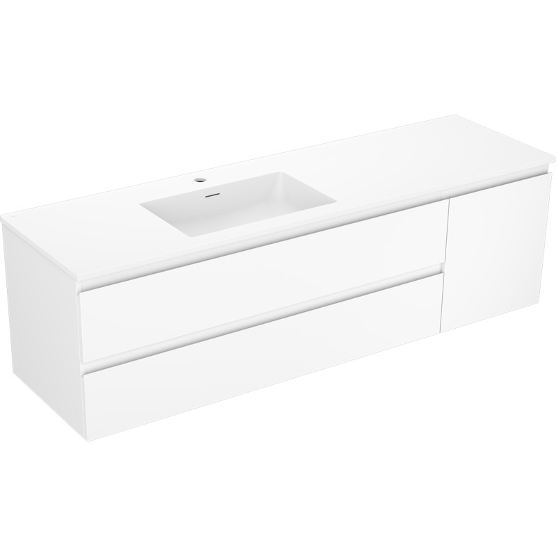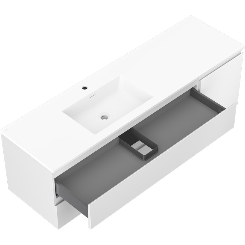 Specifikace produktu: Rozměry skříňky: Šířka: 160 cm Hloubka: 46 cm Výška: 47 cm Sada obsahuje: Zásuvková skříňka pod umyvadlo: Šířka: 120 cm Hloubka: 46 cm Výška: 47 cm Barva korpusu: Matná bílá Materiál korpusu: Lakovaná deska Barva čela: Matná bílá Materiál čela: Lakovaná MDF deska Konstrukce čela: Hladká Počet zásuvek: 2 Prostorná zásuvka s funkcí tlumeného dovírání Umyvadlová skříňka s dvířky: Šířka: 40 cm Výška: 47 cm Hloubka: 46 cm Barva korpusu: Matná bílá Materiál korpusu: Lakovaná deska Barva čela: Matná bílá Materiál čela: Lakovaná MDF deska Konstrukce čela: Hladká Počet dvířek: 1 1 police Panty s funkcí tlumeného dovírání Univerzální montáž dvířek (levé/pravé) Povrch odolný vůči UV záření Umyvadlo: Šířka: 161 cm Hloubka: 46,5 cm Výška: 16,5 cm Barva umyvadla: Matná bílá Materiál umyvadla: Konglomerát Otvor pro přepad: Ano Otvor pro baterii: Ano Výrobek smontovaný