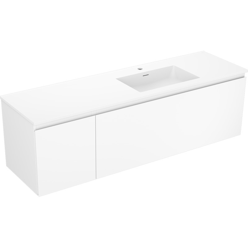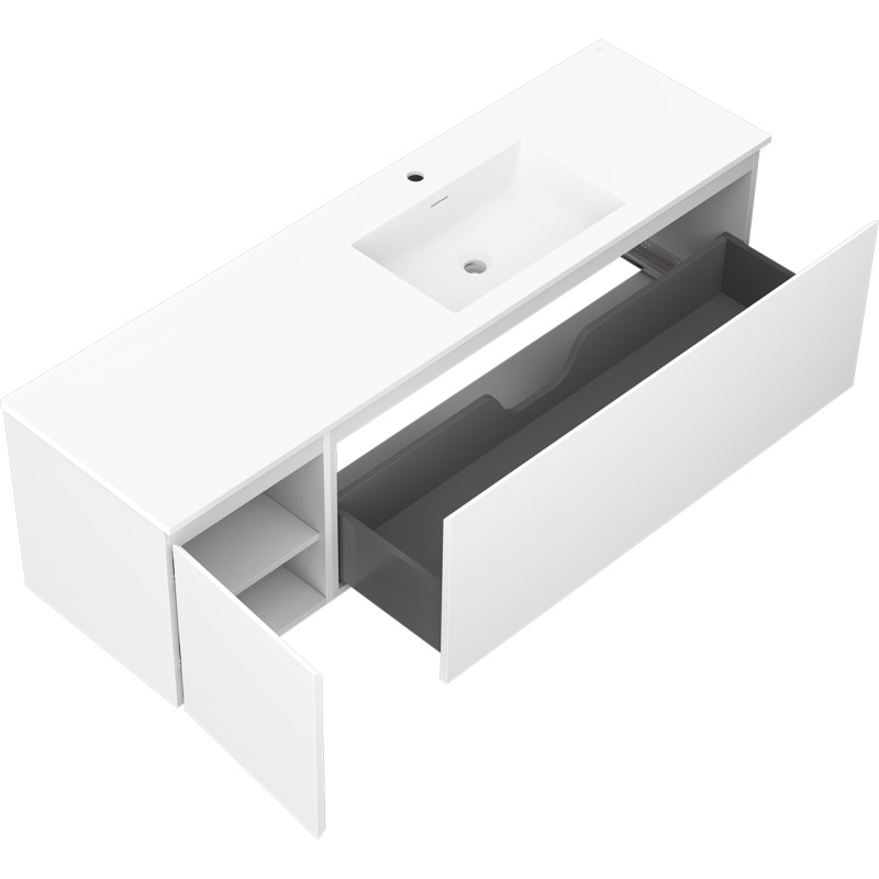 Specifikace produktu: Rozměry skříňky: Šířka: 160 cm Hloubka: 46 cm Výška: 47 cm Sada obsahuje: Zásuvková skříňka pod umyvadlo: Šířka: 120 cm Hloubka: 46 cm Výška: 47 cm Barva korpusu: Matná bílá Materiál korpusu: Lakovaná deska Barva čela: Matná bílá Materiál čela: Lakovaná MDF deska Konstrukce čela: Hladká Počet zásuvek: 1 Prostorná zásuvka s funkcí tlumeného dovírání Umyvadlová skříňka s dvířky: Šířka: 40 cm Výška: 47 cm Hloubka: 46 cm Barva korpusu: Matná bílá Materiál korpusu: Lakovaná deska Barva čela: Matná bílá Materiál čela: Lakovaná MDF deska Konstrukce čela: Hladká Počet dvířek: 1 1 police Panty s funkcí tlumeného dovírání Univerzální montáž dvířek (levé/pravé) Povrch odolný vůči UV záření Umyvadlo: Šířka: 161 cm Hloubka: 46,5 cm Výška: 16,5 cm Barva umyvadla: Matná bílá Materiál umyvadla: Konglomerát Otvor pro přepad: Ano Otvor pro baterii: Ano Produkt smontovaný