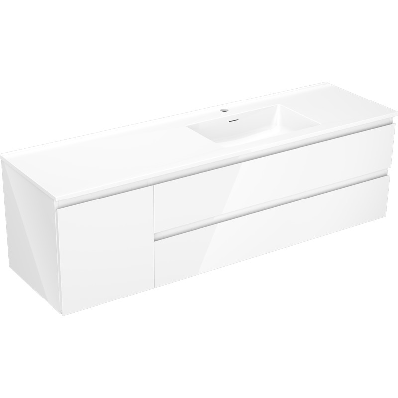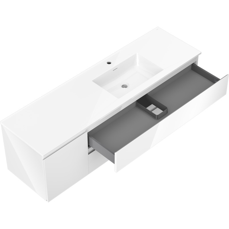 Specifikace produktu: Rozměry skříňky: Šířka: 160 cm Hloubka: 46 cm Výška: 47 cm Sada obsahuje: Zásuvková skříňka pod umyvadlo: Šířka: 120 cm Hloubka: 46 cm Výška: 47 cm Barva korpusu: Bílý lesk Materiál korpusu: Lakovaná deska Barva čela: Bílý lesk Materiál čela: Lakovaná MDF deska Struktura čela: Hladká Počet zásuvek: 2 Prostorná zásuvka s funkcí tlumeného dovírání Povrch odolný vůči UV záření Skříňka pod umyvadlo s dvířky: Šířka: 40 cm Výška: 47 cm Hloubka: 46 cm Barva korpusu: Bílý lesk Materiál korpusu: Lakovaná deska Barva čela: Bílý lesk Materiál čela: Lakovaná MDF deska Struktura čela: Hladká Počet dvířek: 1 1 police Panty s funkcí tlumeného dovírání Univerzální montáž dvířek (levé/pravé) Povrch odolný vůči UV záření Umyvadlo: Šířka: 161 cm Hloubka: 46,5 cm Výška: 16,5 cm Barva umyvadla: Lesklá bílá Materiál umyvadla: Konglomerát Otvor pro přepad: Ano Otvor pro baterii: Ano Smontovaný produkt