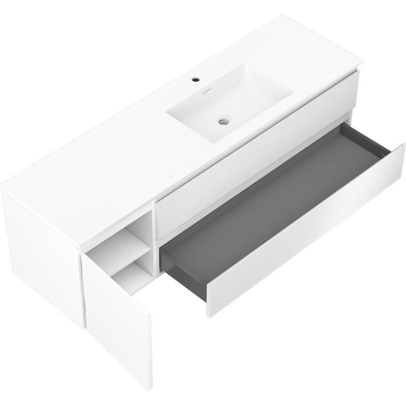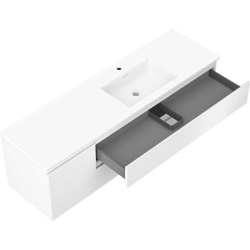 Specifikace produktu: Rozměry skříňky: Šířka: 160 cm Hloubka: 46 cm Výška: 47 cm Sada obsahuje: Zásuvková skříňka pod umyvadlo: Šířka: 120 cm Hloubka: 46 cm Výška: 47 cm Barva korpusu: Matná bílá Materiál korpusu: Lakovaná deska Barva čela: Matná bílá Materiál čela: Lakovaná MDF deska Konstrukce čela: Hladká Počet zásuvek: 2 Prostorná zásuvka s funkcí tlumeného dovírání Umyvadlová skříňka s dvířky: Šířka: 40 cm Výška: 47 cm Hloubka: 46 cm Barva korpusu: Matná bílá Materiál korpusu: Lakovaná deska Barva čela: Matná bílá Materiál čela: Lakovaná MDF deska Konstrukce čela: Hladká Počet dvířek: 1 1 police Panty s funkcí tlumeného dovírání Univerzální montáž dvířek (levé/pravé) Povrch odolný vůči UV záření Umyvadlo: Šířka: 161 cm Hloubka: 46,5 cm Výška: 16,5 cm Barva umyvadla: Matná bílá Materiál umyvadla: Konglomerát Otvor pro přepad: Ano Otvor pro baterii: Ano Výrobek smontovaný