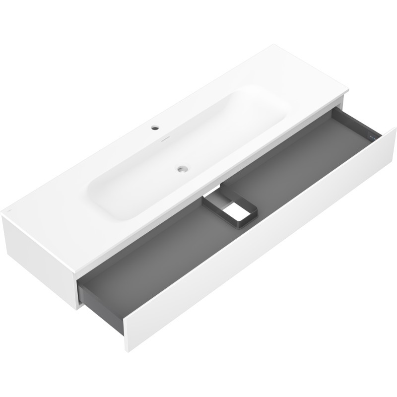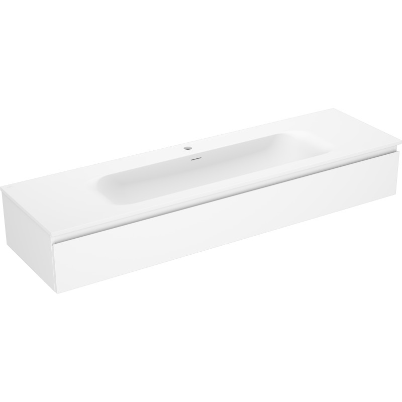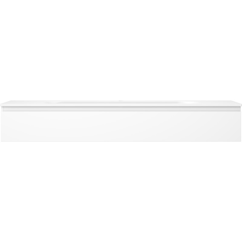 Specifikace produktu: Rozměry skříňky: Šířka: 160 cm Hloubka: 46 cm Výška: 23,5 cm Barva korpusu: Matná bílá Materiál korpusu: Lakovaná deska Barva čela: Matná bílá Materiál čela: Lakovaná MDF deska Struktura čela: Hladká Počet zásuvek: 1 Prostorná zásuvka s funkcí tichého dovírání Povrch odolný vůči UV záření Rozměry umyvadla: Šířka: 161 cm Hloubka: 46,5 cm Výška: 16,5 cm Barva umyvadla: Matná bílá Materiál umyvadla: Konglomerát Otvor pro přepad: Ano Otvor pro baterii: Ano Smontovaný výrobek
