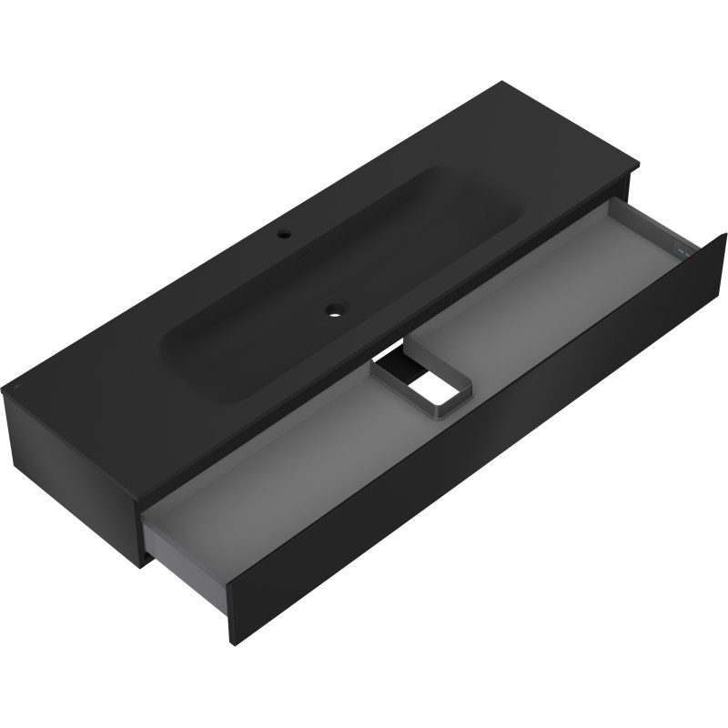 Specifikace produktu: Rozměry skříňky: Šířka: 160 cm Hloubka: 46 cm Výška: 23,5 cm Barva korpusu: Matná černá Materiál korpusu: Lakovaná deska Barva čela: Matná černá Materiál čela: Lakovaná MDF deska Struktura čela: Hladká Počet zásuvek: 1 Prostorná zásuvka s funkcí tichého dovírání Povrch odolný vůči UV záření Rozměry umyvadla: Šířka: 161 cm Hloubka: 46,5 cm Výška: 16,5 cm Barva umyvadla: Matná černá Materiál umyvadla: Konglomerát Otvor pro přepad: Ano Otvor pro baterii: Ano Smontovaný výrobek