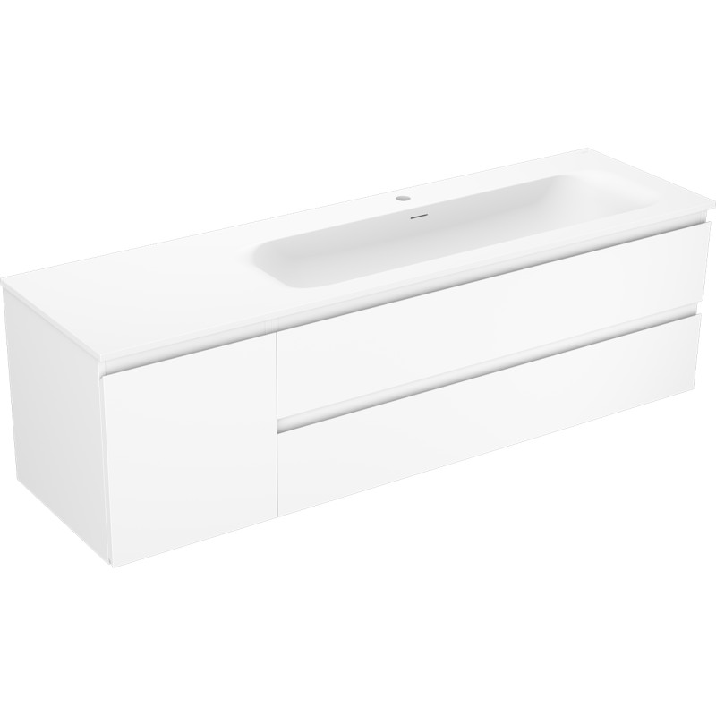Specifikace produktu: Rozměry skříňky: Šířka: 160 cm Hloubka: 46 cm Výška: 47 cm Sada obsahuje: Zásuvková skříňka pod umyvadlo: Šířka: 120 cm Hloubka: 46 cm Výška: 47 cm Barva korpusu: Matná bílá Materiál korpusu: Lakovaná deska Barva čela: Matná bílá Materiál čela: Lakovaná MDF deska Konstrukce čela: Hladká Počet zásuvek: 2 Prostorná zásuvka s funkcí tlumeného dovírání Umyvadlová skříňka s dvířky: Šířka: 40 cm Výška: 47 cm Hloubka: 46 cm Barva korpusu: Matná bílá Materiál korpusu: Lakovaná deska Barva čela: Matná bílá Materiál čela: Lakovaná MDF deska Konstrukce čela: Hladká Počet dvířek: 1 1 police Panty s funkcí tlumeného dovírání Univerzální montáž dvířek (levé/pravé) Povrch odolný vůči UV záření Umyvadlo: Šířka: 161 cm Hloubka: 46,5 cm Výška: 16,5 cm Barva umyvadla: Matná bílá Materiál umyvadla: Konglomerát Otvor pro přepad: Ano Otvor pro baterii: Ano Výrobek smontovaný