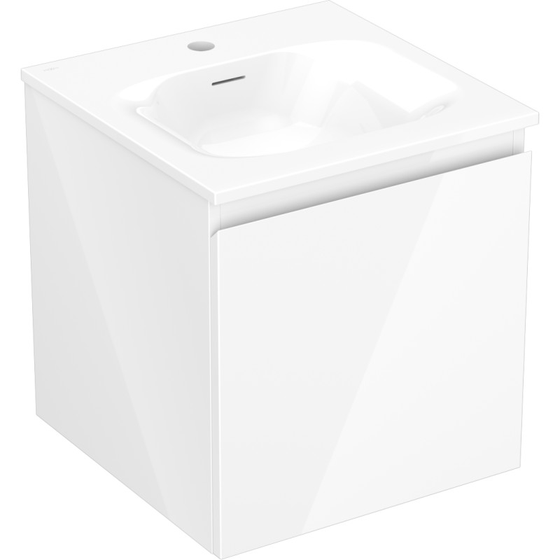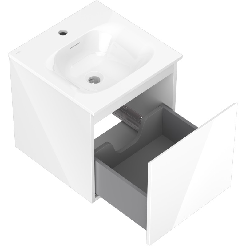 Specifikace produktu: Rozměry skříňky: Šířka: 45 cm Hloubka: 46 cm Výška: 47 cm Barva korpusu: Lesklá bílá Materiál korpusu: Lakovaná deska Barva čela: Lesklá bílá Materiál čela: Lakovaná MDF deska Struktura čela: Hladká Počet zásuvek: 1 Prostorná zásuvka s funkcí tlumeného dovírání Povrch odolný vůči UV záření Rozměry umyvadla: Šířka: 46 cm Hloubka: 46,5 cm Výška: 16,5 cm Barva umyvadla: Lesklá bílá Materiál umyvadla: Konglomerát Otvor pro přepad: Ano Otvor pro baterii: Ano Smontovaný výrobek