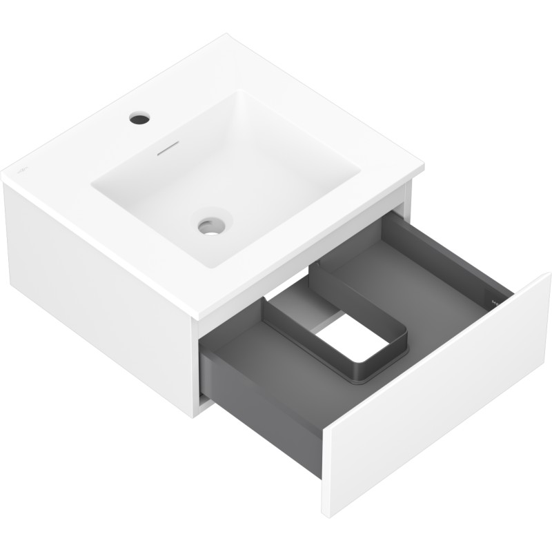 Specifikace produktu: Rozměry skříňky: Šířka: 50 cm Hloubka: 46 cm Výška: 23,5 cm Barva korpusu: Matná bílá Materiál korpusu: Lakovaná deska Barva čela: Matná bílá Materiál čela: Lakovaná MDF deska Struktura čela: Hladká Počet zásuvek: 1 Prostorná zásuvka s funkcí tichého dovírání Povrch odolný vůči UV záření Rozměry umyvadla: Šířka: 51 cm Hloubka: 46,5 cm Výška: 16,5 cm Barva umyvadla: Matná bílá Materiál umyvadla: Konglomerát Otvor pro přepad: Ano Otvor pro baterii: Ano Smontovaný výrobek